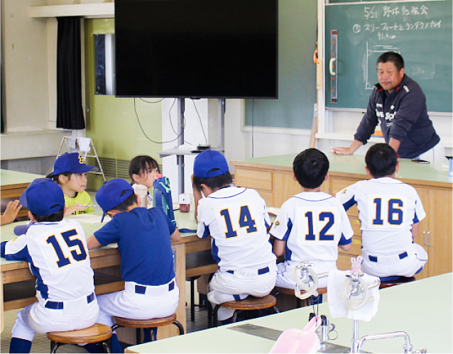 練習の始まり・終わりに挨拶することや、チームプレーの大切さを指導しています。「子どもがエレベーターで知らないおばあちゃんに挨拶した!」など保護者さんも驚くほど、野球を通じてコミュニケーション能力が高まります。